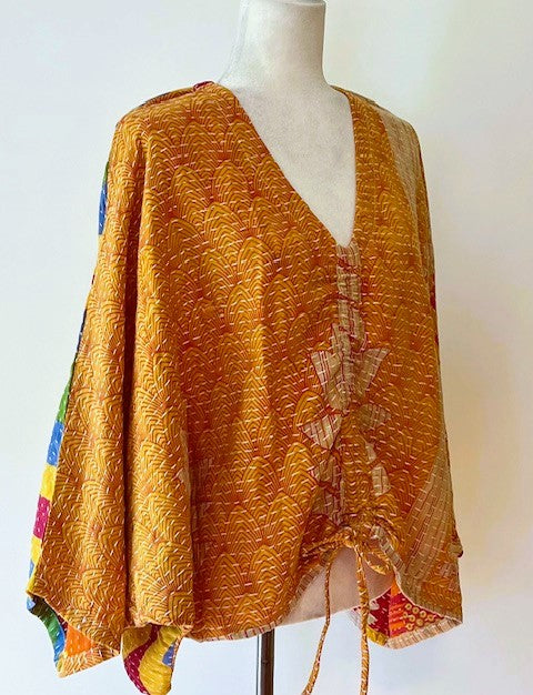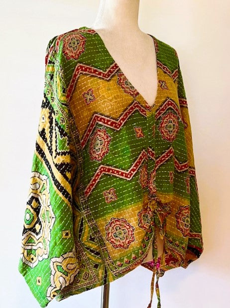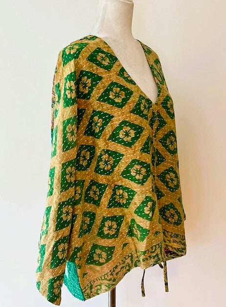 Kantha Bae Cotton Butterfly Top (Green and Mustard)