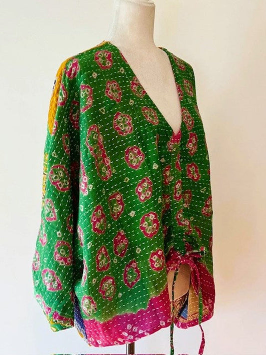 Kantha Bae Cotton Butterfly Top (Green and Pink)