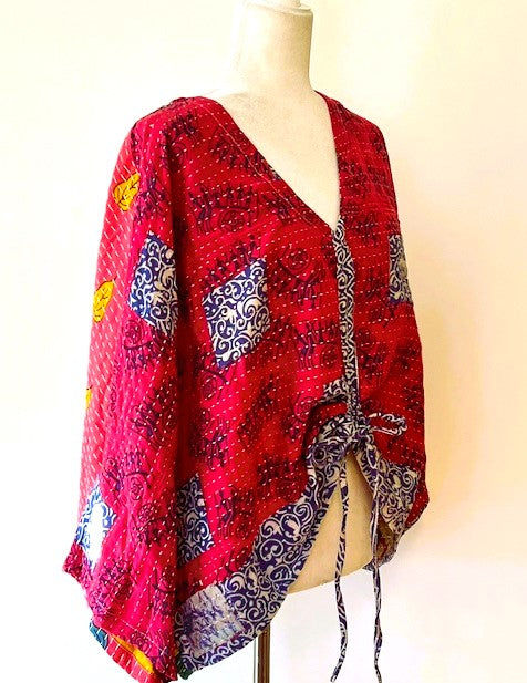 Kantha Bae Shortie Kimono (Yellow/Rose Mix)