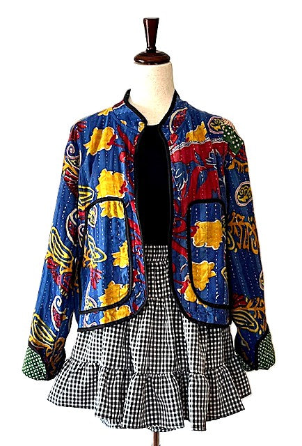 Specialty Collection: Quilted Hand Embroidered Short Jacket. Fully Reversible. (Royal)