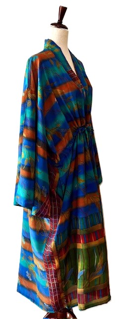 Long Silk Kimono Duster, Dramatic Print Is Perfect For Layering. Avocado