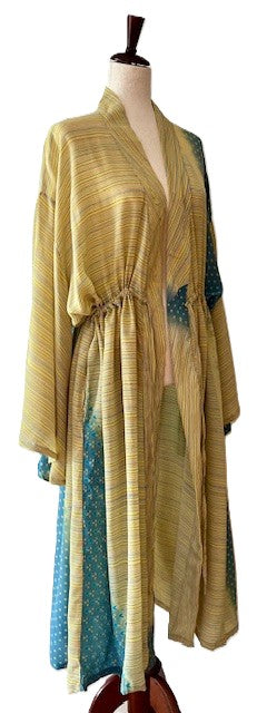 Kantha Trench Kimono Coat Will Exceed Your Expectations, Reversible (Blue Green)