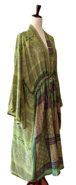 Long Silk Kimono Duster Is Feminine and Sweet. (Green Florals)