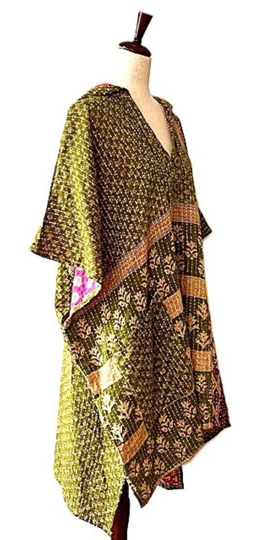 Kantha Bae Peace and Love Poncho, Summer Weight (Olive)