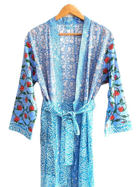 Hand Block Printed Cotton Kimono Crossover. Beautiful Blues.