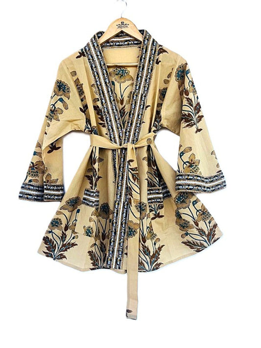 New Style: Designer Floral Cotton Kimono Jacket With Pocket And Matching Belt