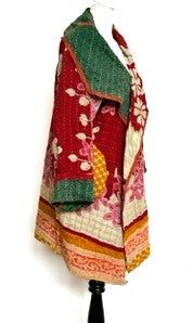 Kantha Bae Cotton Sari Kimono, Fully Reversible. (Red Green)