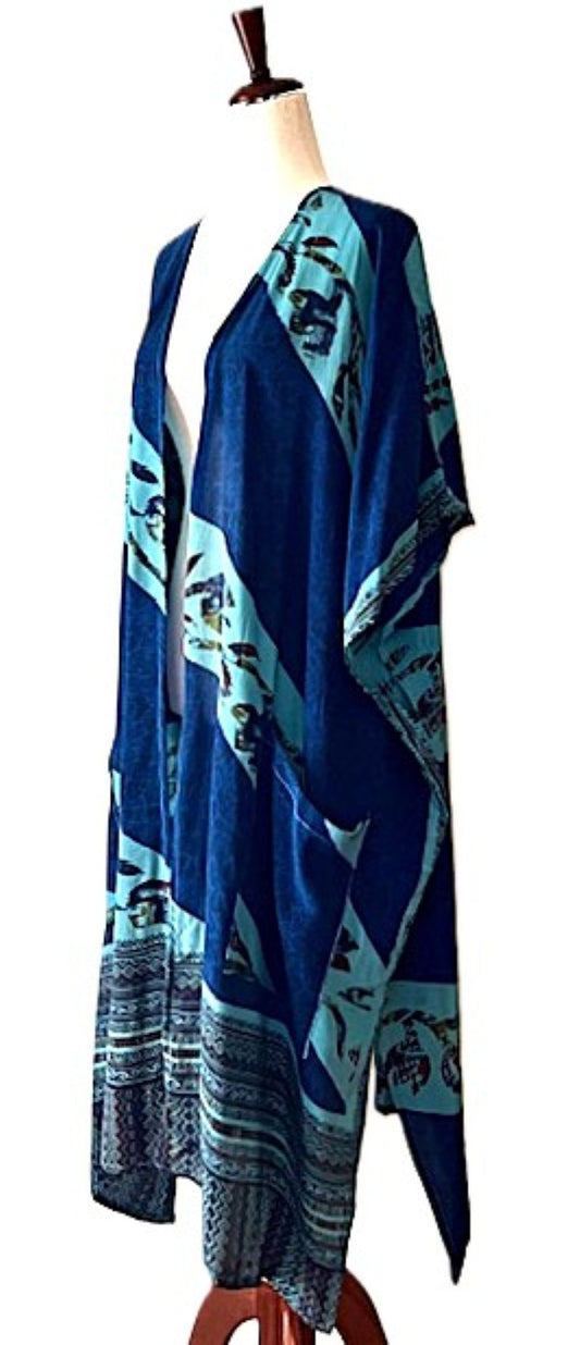 Kantha Bae Solutions Open Kimono Jacket Provides Versatility (Blue Yellow)