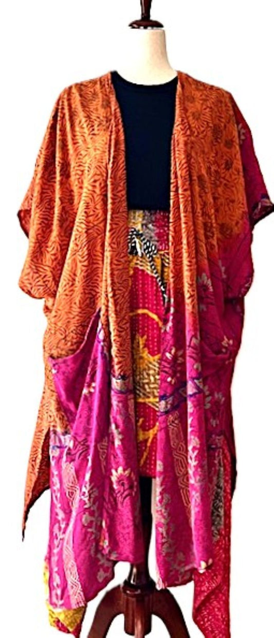 Kantha Bae Silk Dreamweaver Kimono Is A Statement Piece. (Orange)