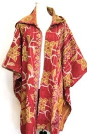 Kantha Bae Peace and Love Poncho. (Red Abstract)
