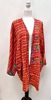 Top of the Line Silk Kimono Duster, Rich Mixed Print With Embroidery
