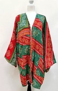 Solutions Open Kimono Jacket Provides Versatility (Red/Green)