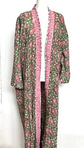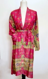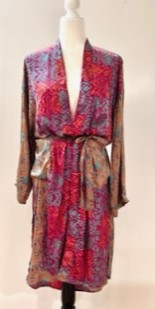 Top of the Line Silk Kimono Duster Tone on Tone (Pink/Green)