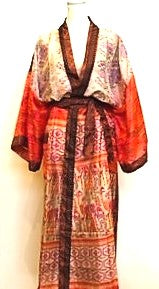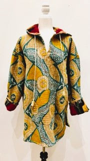 One of a Kind Mixed Print Cotton Artisan Kimono (Burgundy/yellow)