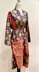 Top of the Line Silk Kimono Duster, Rich Mixed Print (Royal)