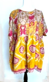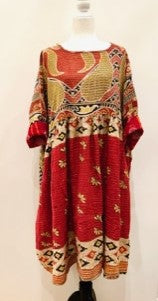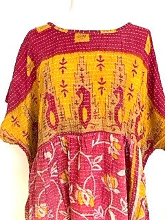 Artisan Kantha Quilt Float Dress. Comfortable and Very Chic (Honey Olive)