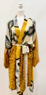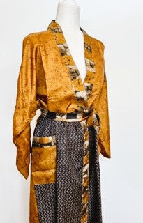 Top of the Line Silk Kimono Duster Mixed Print (Golden Bronze)