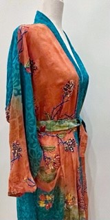 Luxury Silk Kimono Duster: Gorgeous Colors in Bronze/Brown/Orange