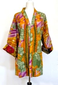 Next Generation Handmade, Fully Reversible Winter Kantha Jacket (Green/Gold/Purple)