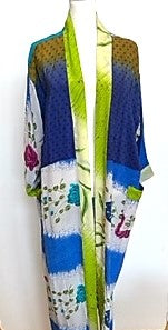 Top of the Line Silk Kimono Duster Mixed Print (Emerald/navy)