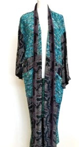 Top of the Line Silk Kimono Duster Mixed Print (Aqua/Charcoal)