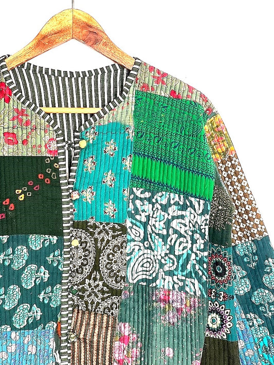 Reversible Cotton Quilted Womens Jacket With Stripe Piping (Dark Green)