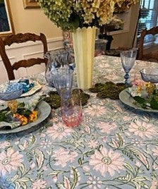 Set of Soft Pastels With 6 Mathing Napkins: Block Print Table Cloth (60 x 90)