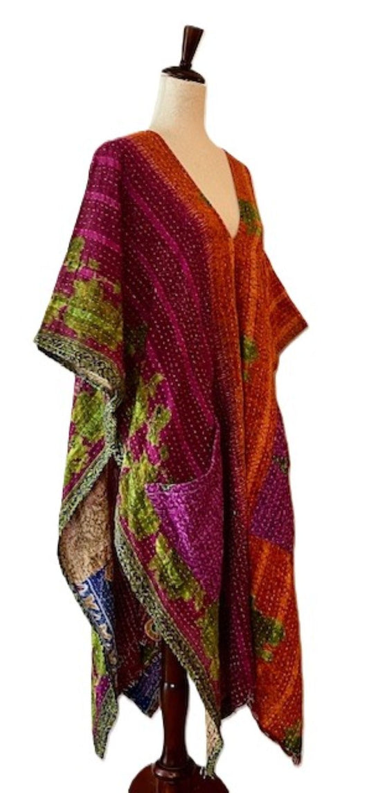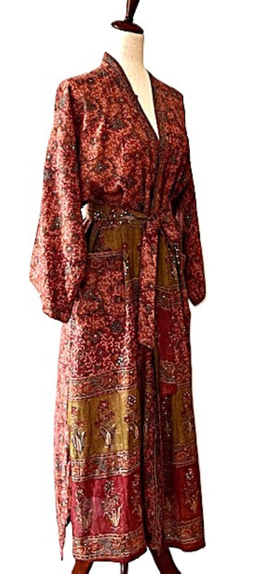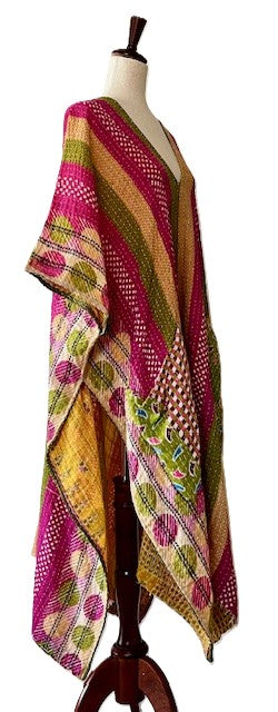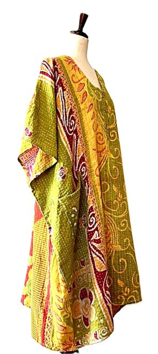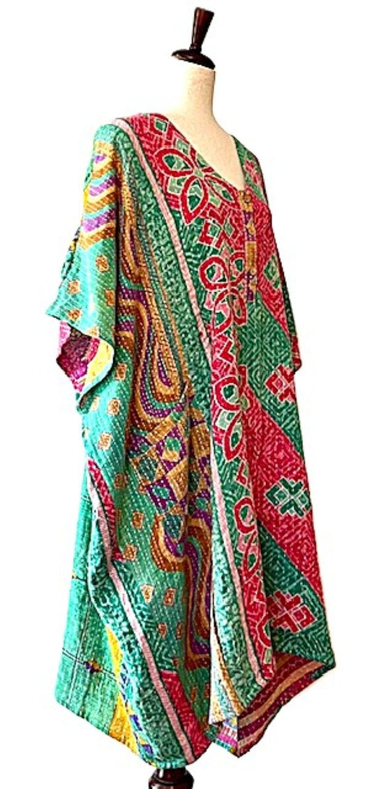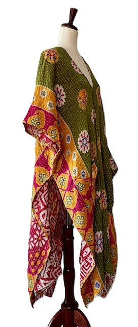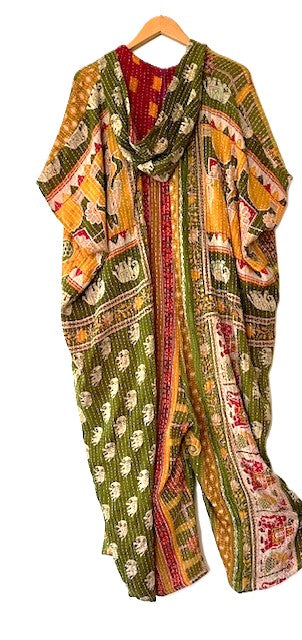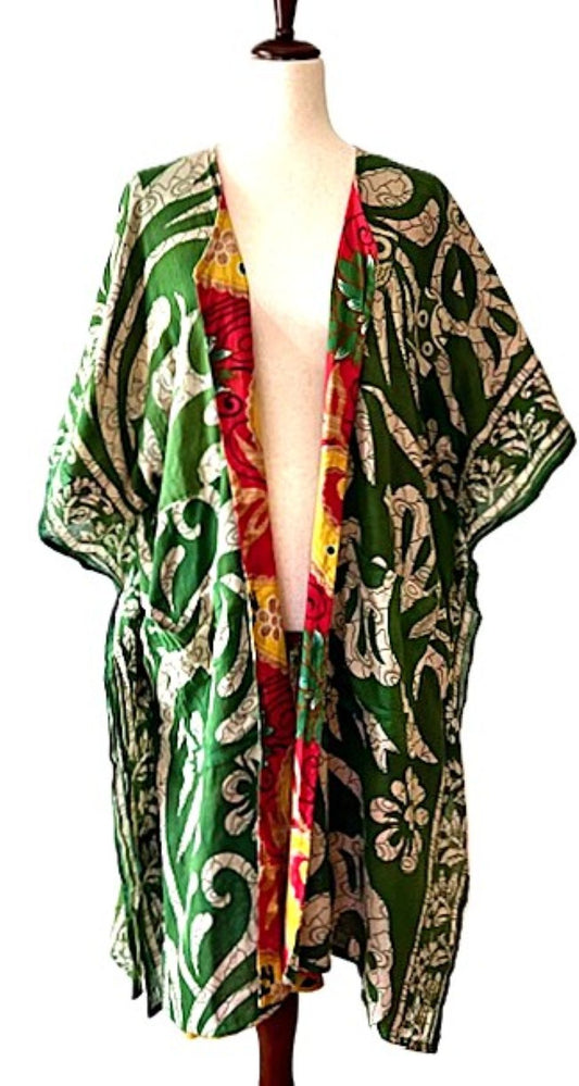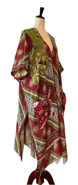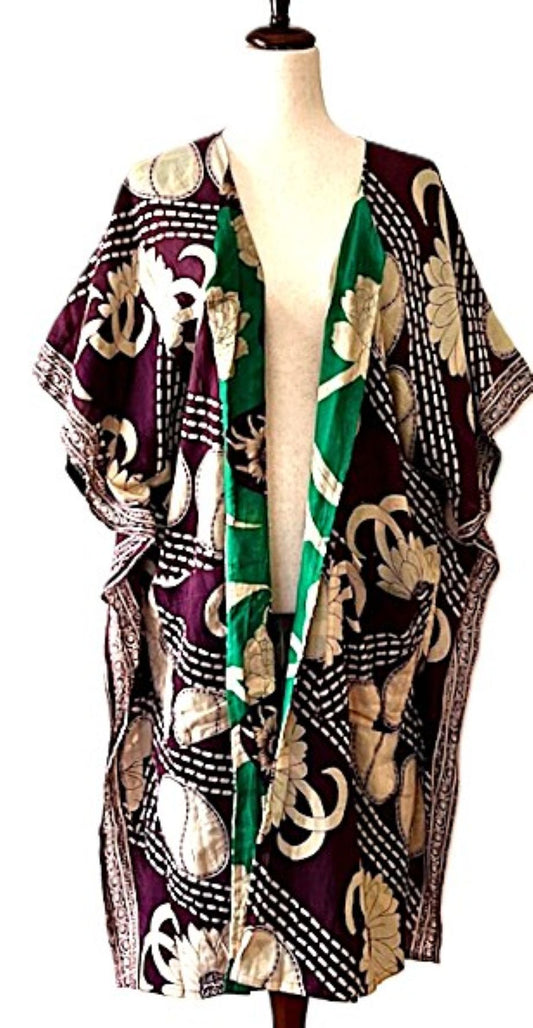 Kantha Bae Take It Easy Cotton Kimono, Fully Reversible. (Green Burgundy)