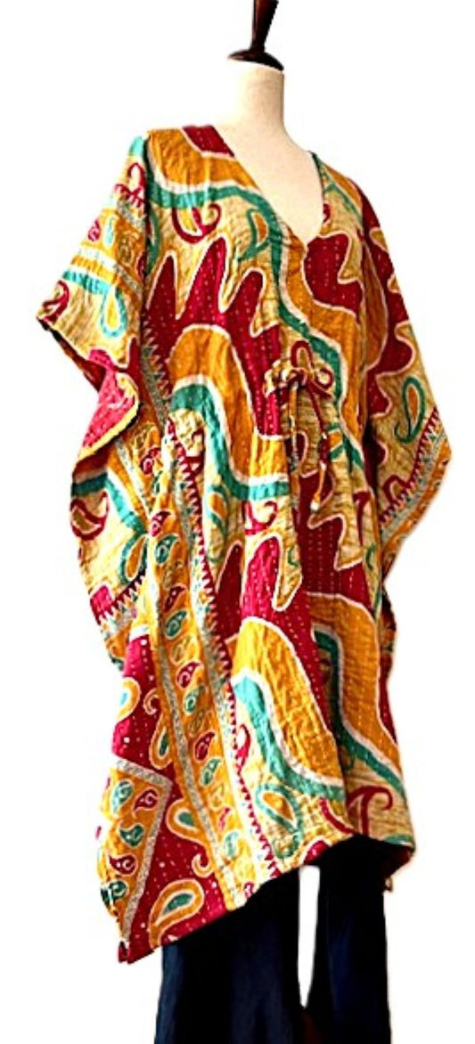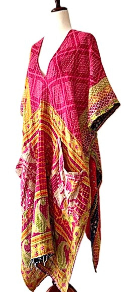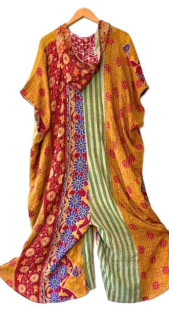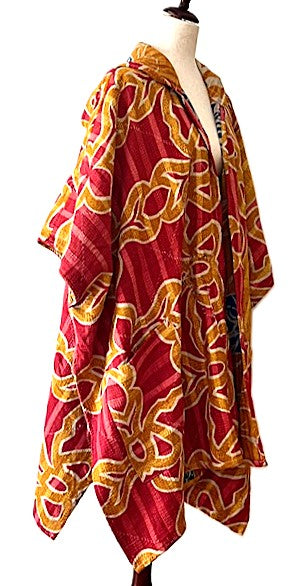 Kantha Bae Take It Easy Cotton Kimono, Fully Reversible. (Red Green)
