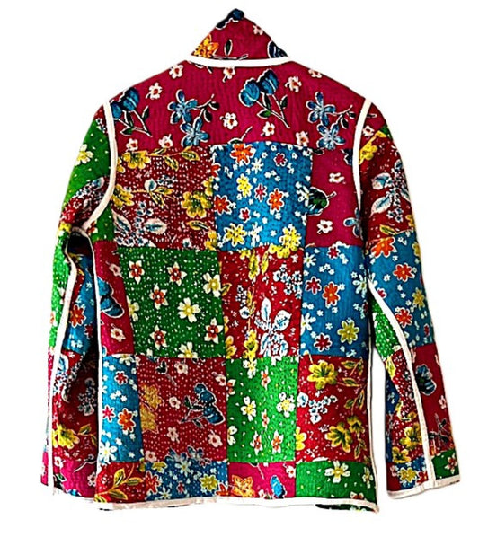 Jackets, Fully Reversible Short Quilted Jacket With Kantha Stitching. Beautiful Colors.