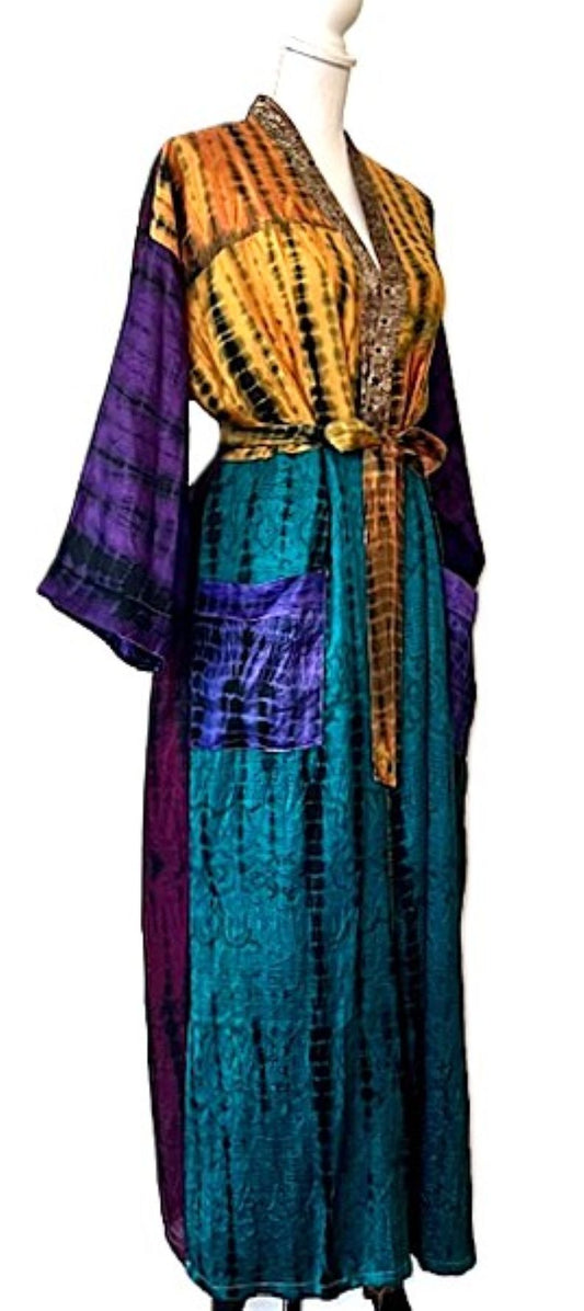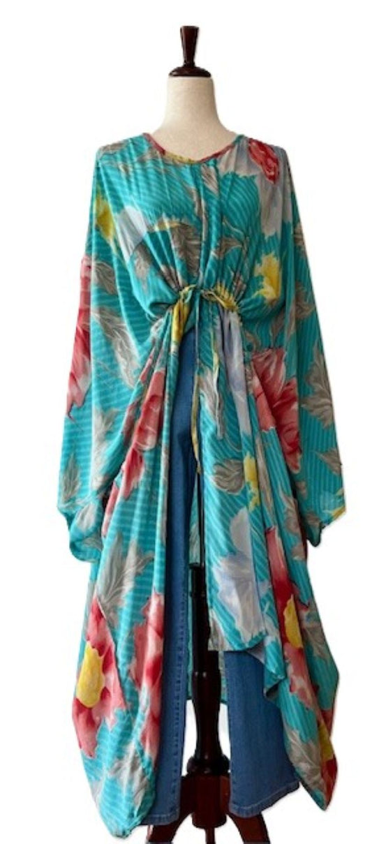 Long Silk Kimono Duster Is Striking In Turquoise Bronze Color Block