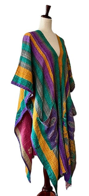 Kantha Bae Take It Easy Cotton Kimono, Fully Reversible. (Grape Green)