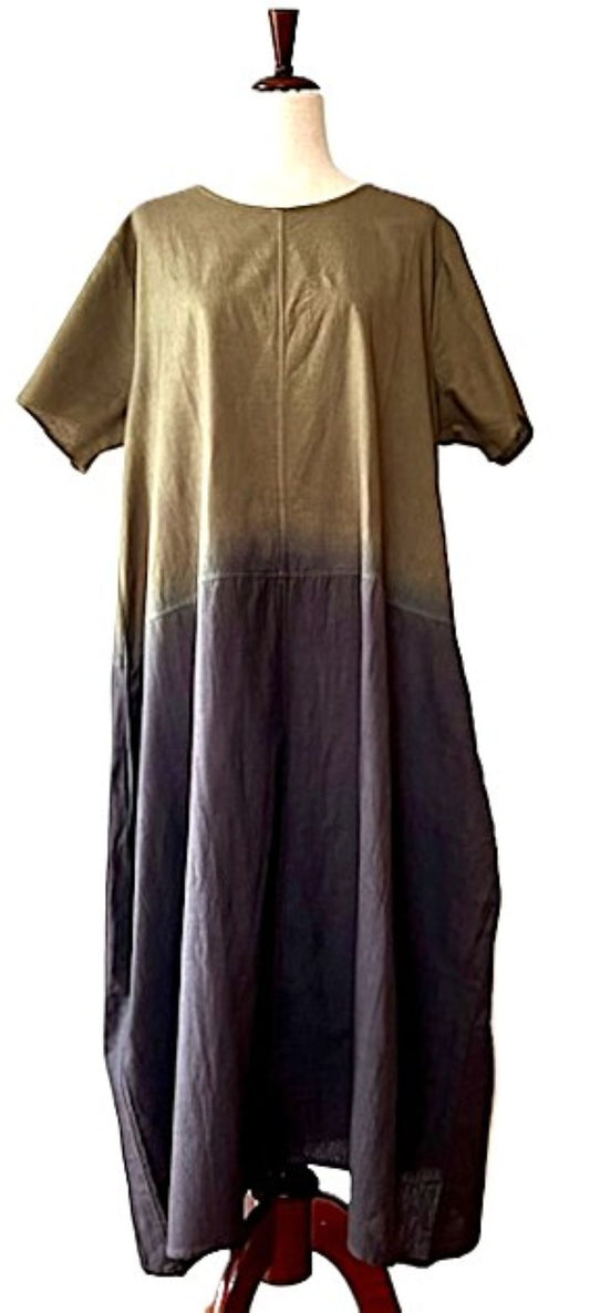 Dresses: Dip Dye Ombré Linen Dress with Pockets (Olive)