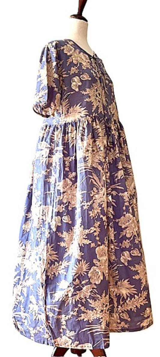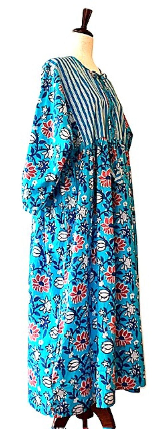 Dresses: Floral Cotton Handblock Midi In Royal Blue . A Beauty.