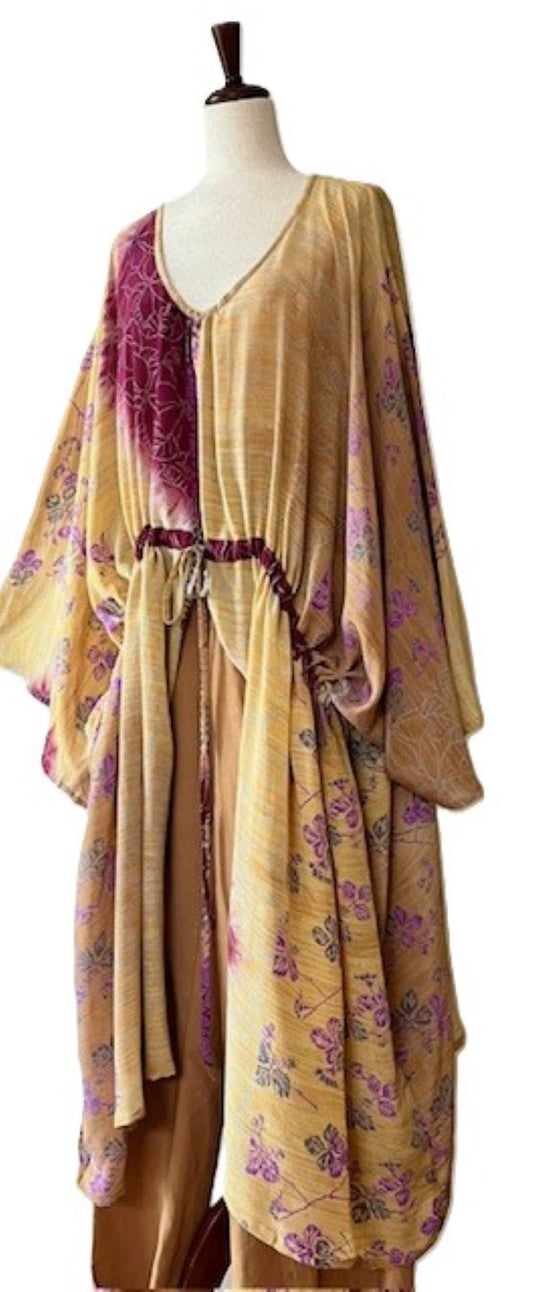 Top of the Line Silk Kimono Duster, Rich Warm Print, Engineered Border