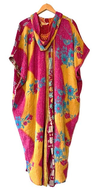 Kantha Bae Take It Easy Cotton Kimono, Fully Reversible. (Yellow Floral)