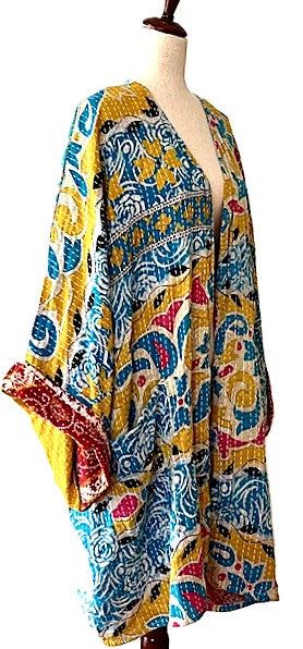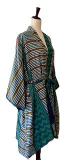 Kantha Trench Kimono Coat Will Exceed Your Expectations, Reversible (Blue Green)