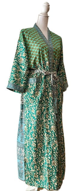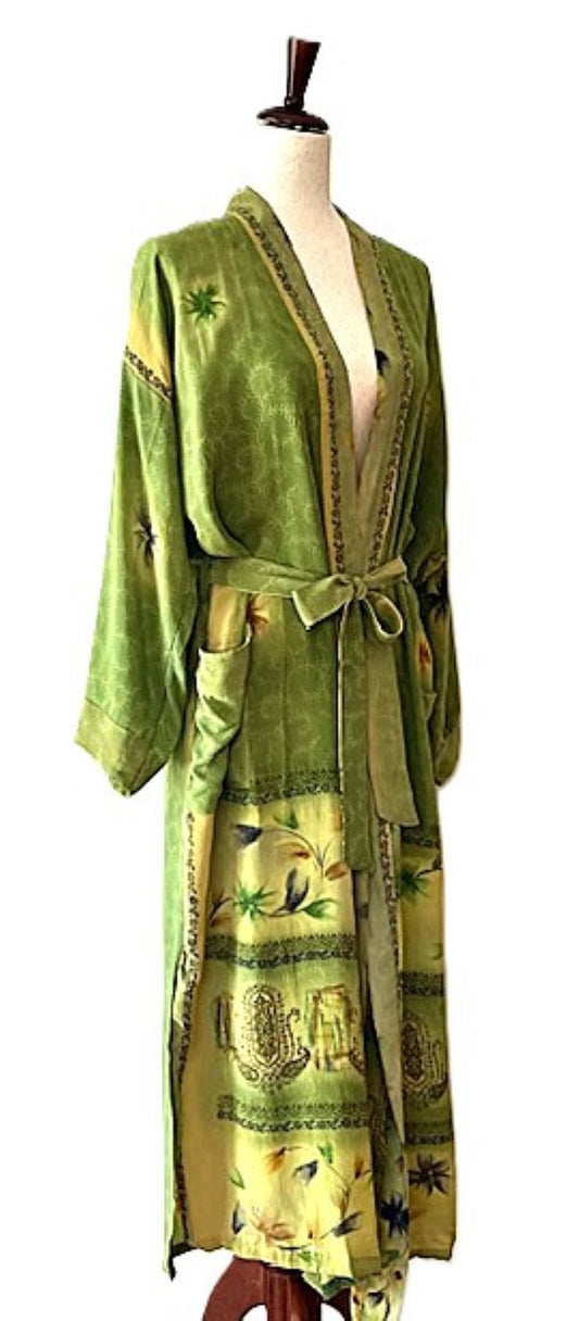 Long Silk Kimono Duster Is Feminine and Sweet. (Green Florals)