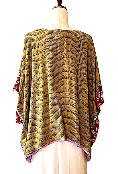 Kantha Bae Peace and Love Poncho. (Red Geometric)