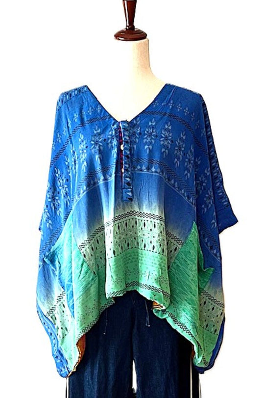 Kantha Bae Peace and Love Poncho. (Turquoise)