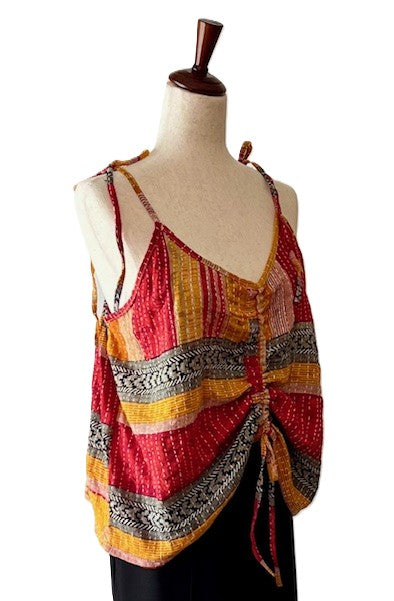 Kantha Bae Butterfly Tank Top, Fully Reversible. (Red Stripe)