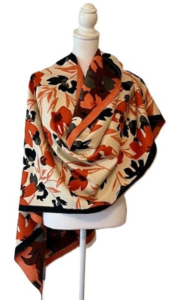 Red Black Garden Print Reversible Wrap - Artisan Shawl