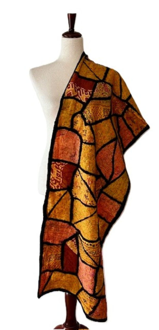Scarf: Stained Glass Collage Patchwork Scarf Gold
