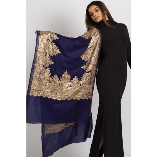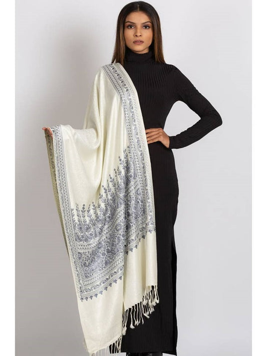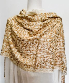 Tanaya Embroidered Wool Shawl. Collector's shawl. Gold & Ivory