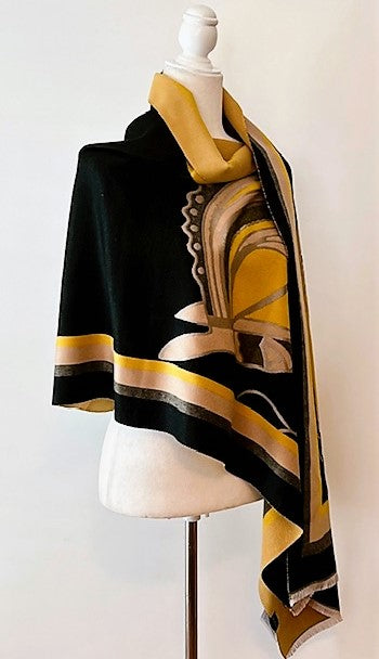 Mustard and Black Mane Reversible Wrap – Artisan Shawl