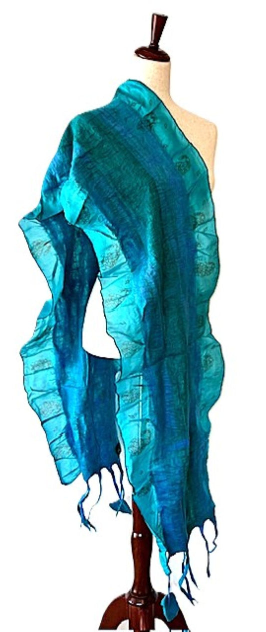 Artisan Silk And Wool Shawl Is a Purchase with a Purpose. (Turquoise)