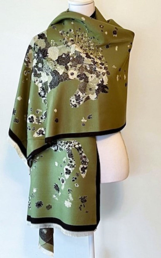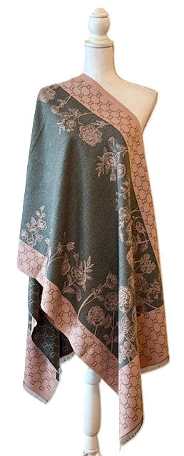 Green and Gray Reversible Wrap With A Cashmere Feel: Artisan Shawl