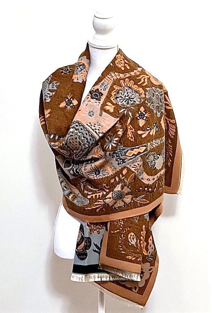Black Tan Harness Print Reversible Wrap - Artisan Shawl