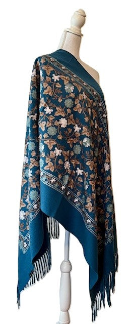 Embroidered Flower Vine Blue Wrap – Artisan Shawl