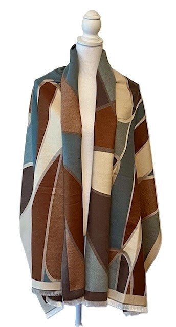 Brown, and Light Blues Reversible Wrap – Artisan Shawl